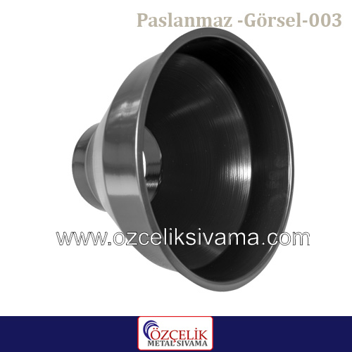 Paslanmaz Krom Sıvama İşlemi Malzemenin Sertliği Açısından Belli kalınlıklar ve Ebatlarda Sıvanabilirlik Özelliğine Sahiptir 304 Paslanmaz Çelik Malzeme Genelde en yaygın Kullanılan Malzemedir kalınlıklar 0,50 mm de 1,5 mm Kadar Sıvama Yapılabilir Küçük Ebatlarda Daha az derinliklerde Uygun Olabilir Metal kapaklar ,Fan Ağızları, Rozetler ençok Uygulamalardır Özçelik Metal Sıvama Olarak 40 Yılın tecrübesiyle Zengin Kalıp Yelpazesine Sahibiz .